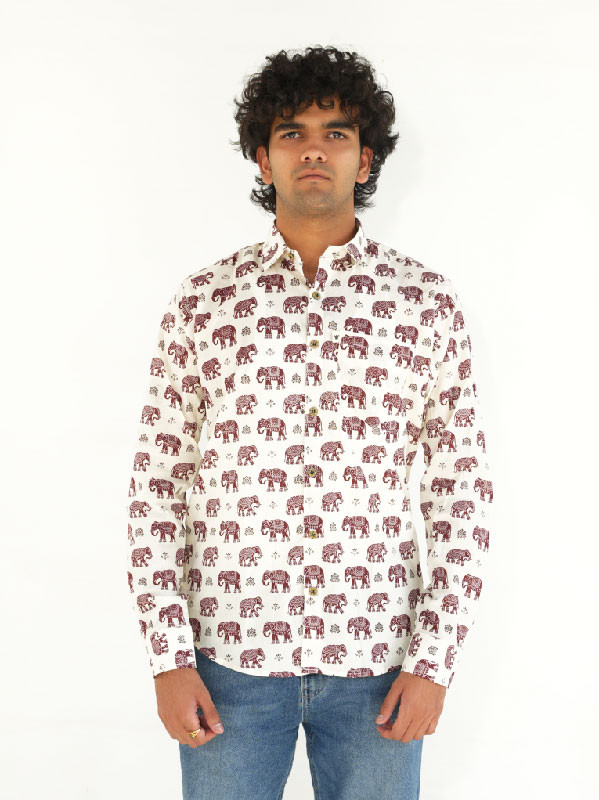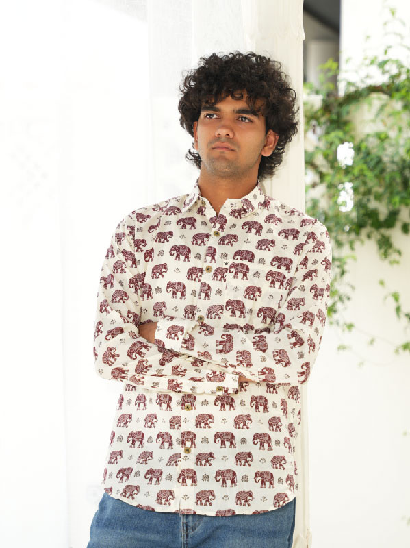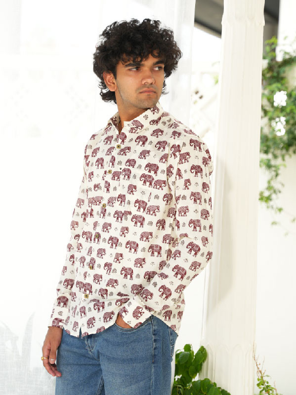 Celebrate Rajasthani heritage with the Hathi Phool Shirt—a full-sleeve men's shirt featuring graceful floral designs paired with majestic elephant motifs. Tailored from soft, breathable fabric, this piece is perfect for festive occasions, cultural gatherings, or simply adding a touch of royal flair to your wardrobe. Make every day feel like a celebration of culture and style.